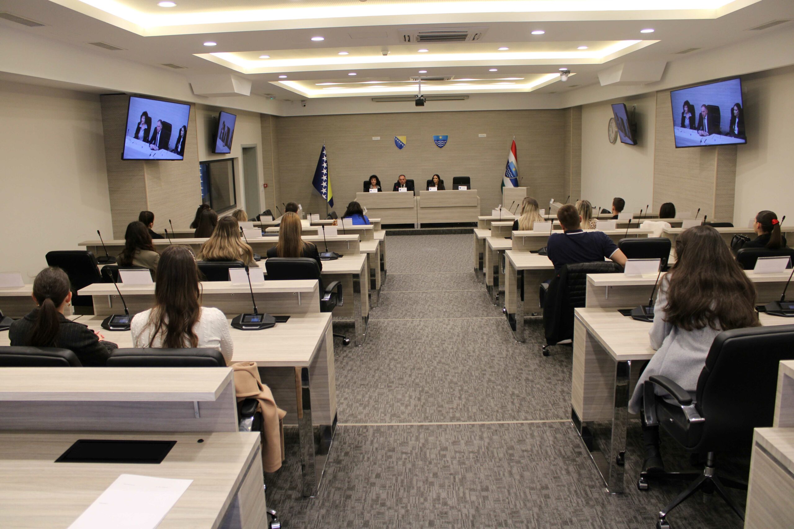 Dana 2. travnja studenti druge i pete godine Pravnog fakulteta Sveučilišta u Mostaru, predvođeni izv. prof. dr. sc. Cvijom Jurković i dr. sc. Ivanom Tomićem, višim asistentom, boravili su u studijskoj posjeti Skupštini Hercegovačko-neretvanske županije/kantona.